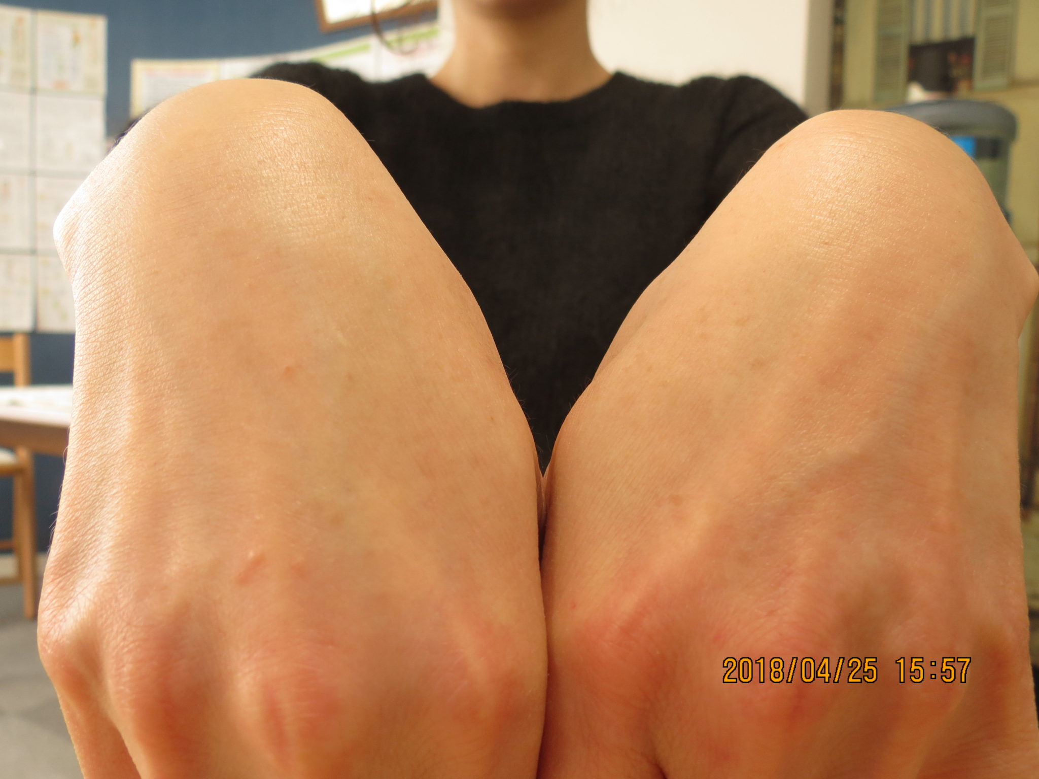 (写真は皮膚炎の方の手です。ステロイドを使わずに治りました。色が異なるのは撮影の影響です)